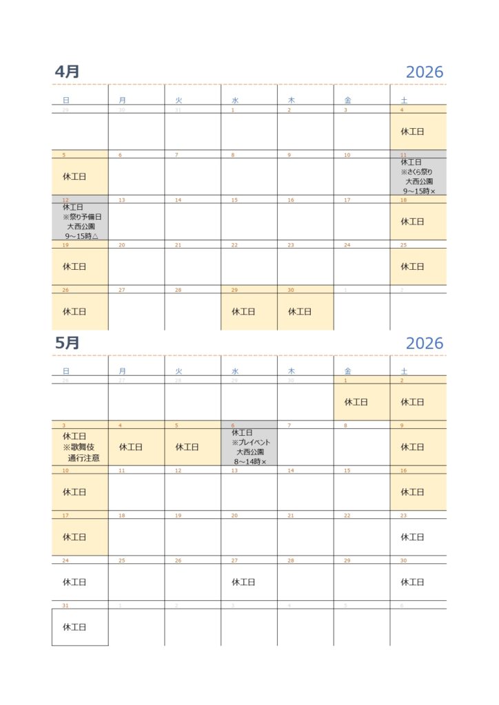 〇リニア工事車両「休工日以外」の試走について ※別添のカレンダーをご確認ください。